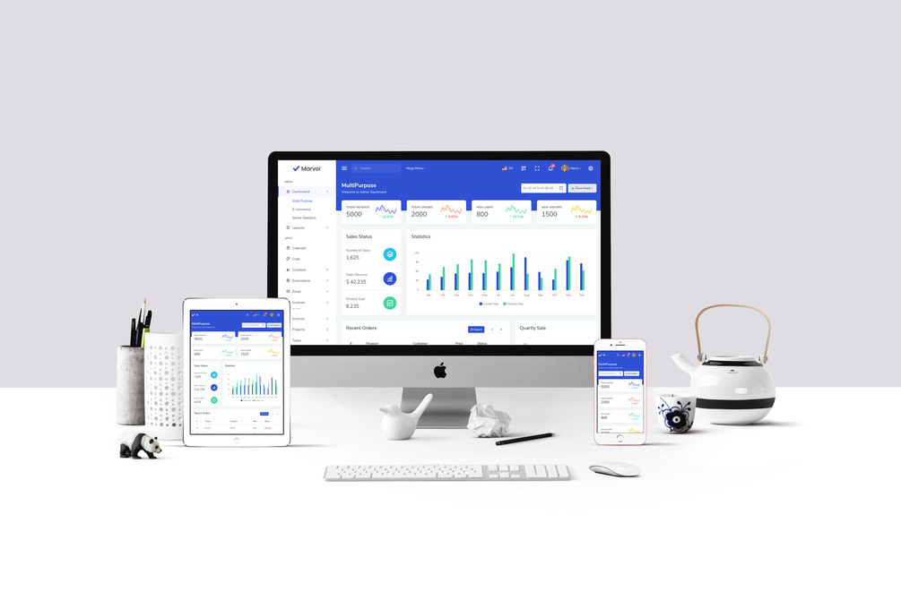 In the event that your prime concern is adaptability, customization, and client experience at that point Lettstart Design Marvel Admin dashboard layout is one such item to keep an eye out for. The premium administrator UI dashboard is rewarding with its highlights and can be utilized for any type of web application including a SAAS-based interface, custom admin panels, dashboard, CRM, CMS, e-commerce panel, etc.